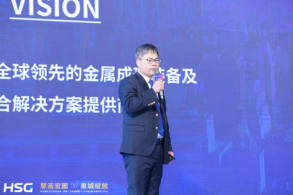 在盛典的重要环节之一,山东省装备制造业协会副秘书长王群发表重要致辞,对宏石激光选择落户济南表示热烈祝贺。他指出,装备制造业是“制造强国”的基石,也是山东省经济发展的战略支柱。在当前产业转型升级的关键时期,宏石激光扎根济南,不仅为山东装备制造业注入了新的活力,也彰显了企业在智能制造领域的前瞻视野和战略布局,具体表示:“宏石激光选择济南,是对山东装备制造业发展环境和市场潜力的高度认可,更是对行业未来发展的有力支持。协会将一如既往地为包括宏石激光在内的企业提供优质服务,优化产业生态,携手推动山东装备制造业迈向更高质量发展。”